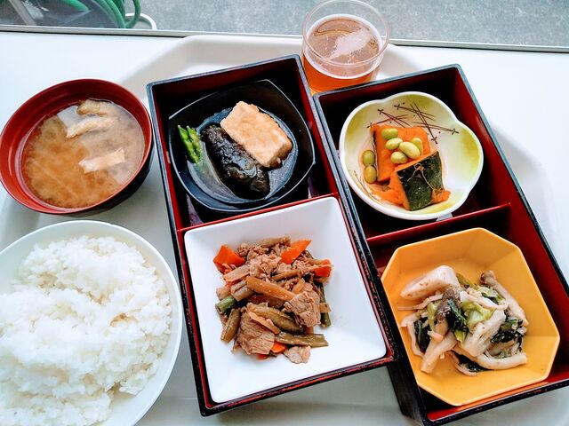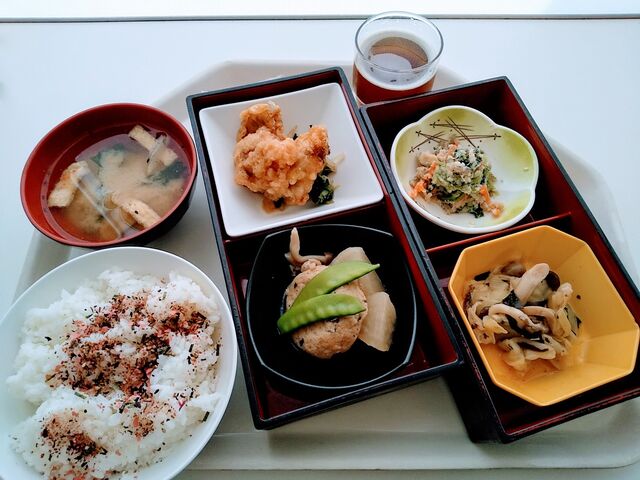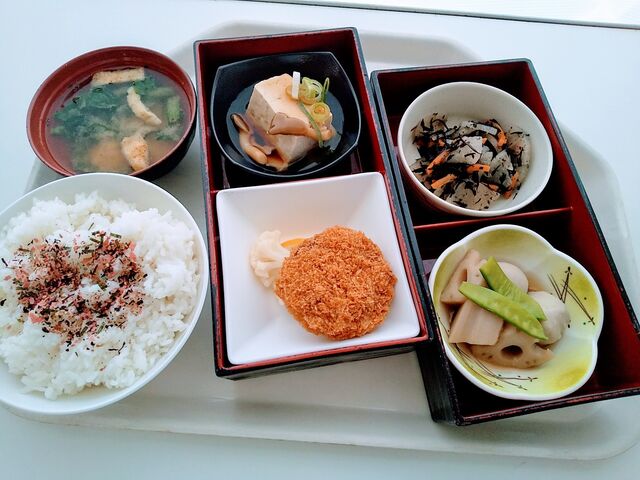 お昼ごはんは豆腐ステーキのヘルシー弁当です🍱